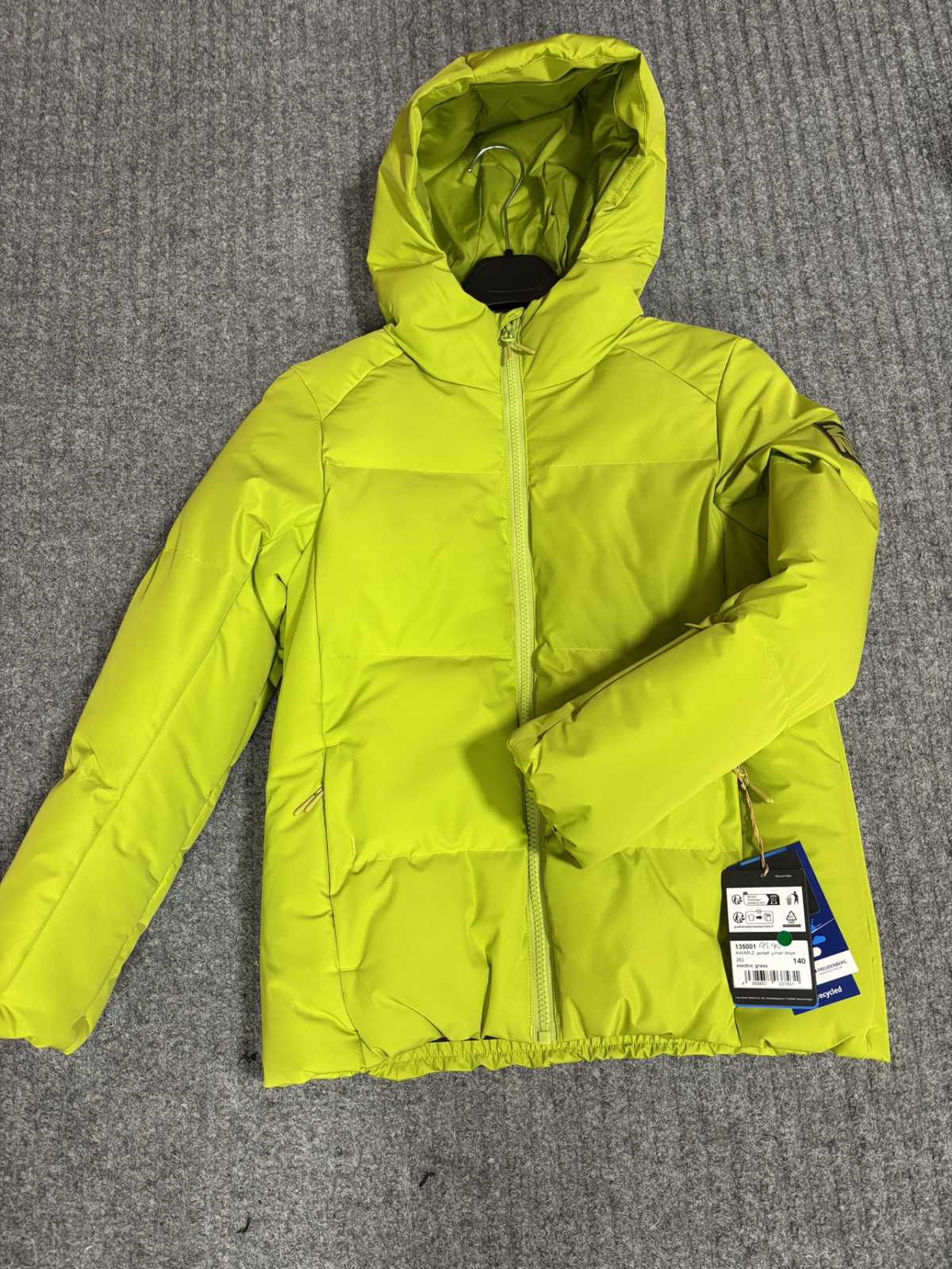 Lämmin laskutakki 140 cm juniorille. Hihassa hissilipputasku.